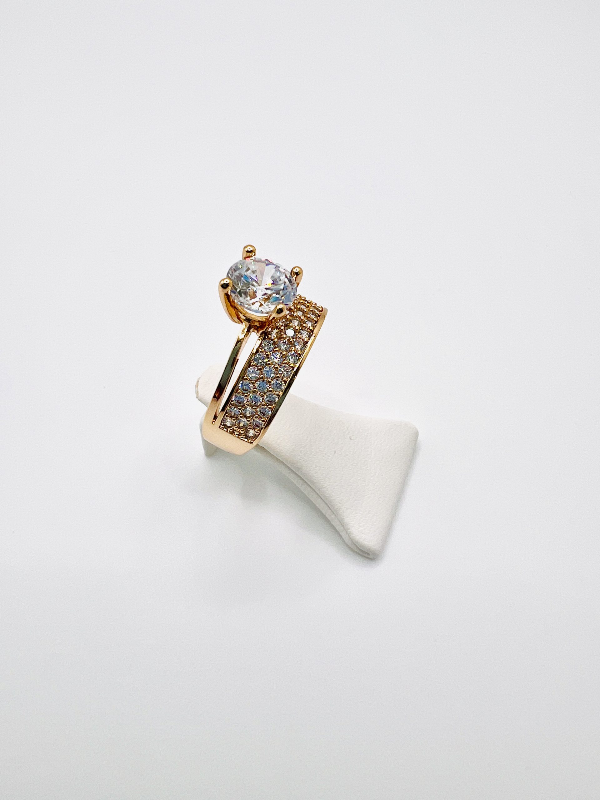 Este anel parece duplo, um solitário e uma aliança larga, na parte superior, no entanto é apenas 1 anel porque na parte inferior estão unidos.