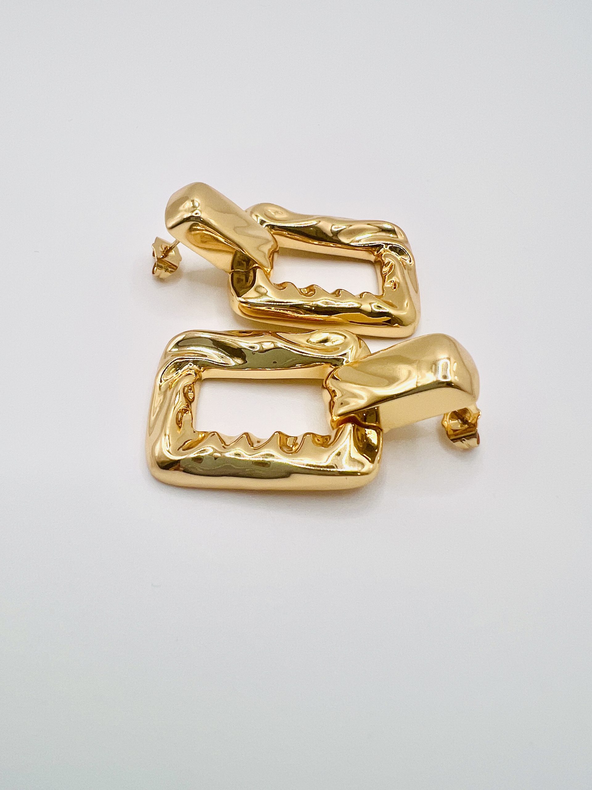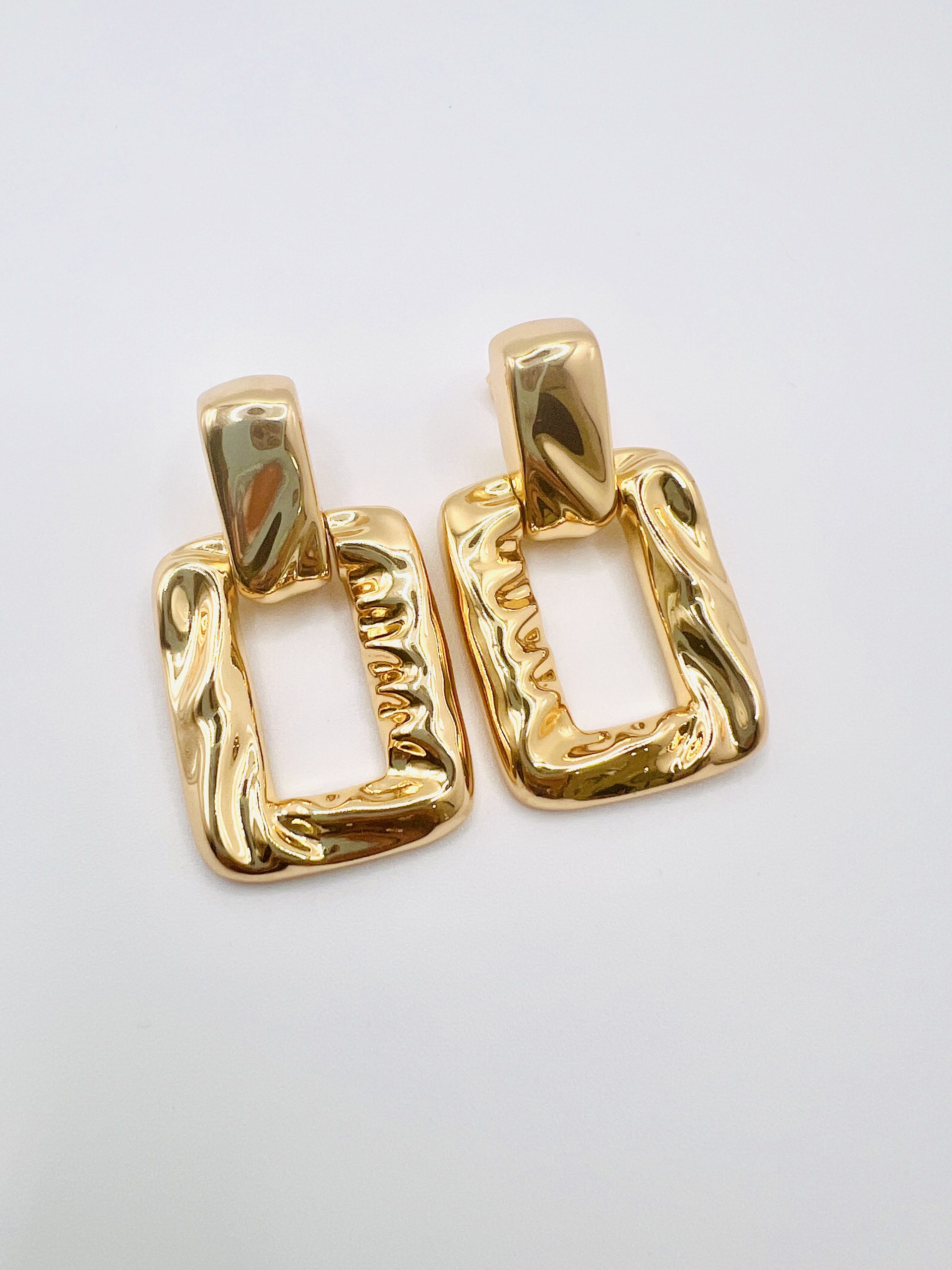 Brincos dourados, modelo retangulo, em semijoía.