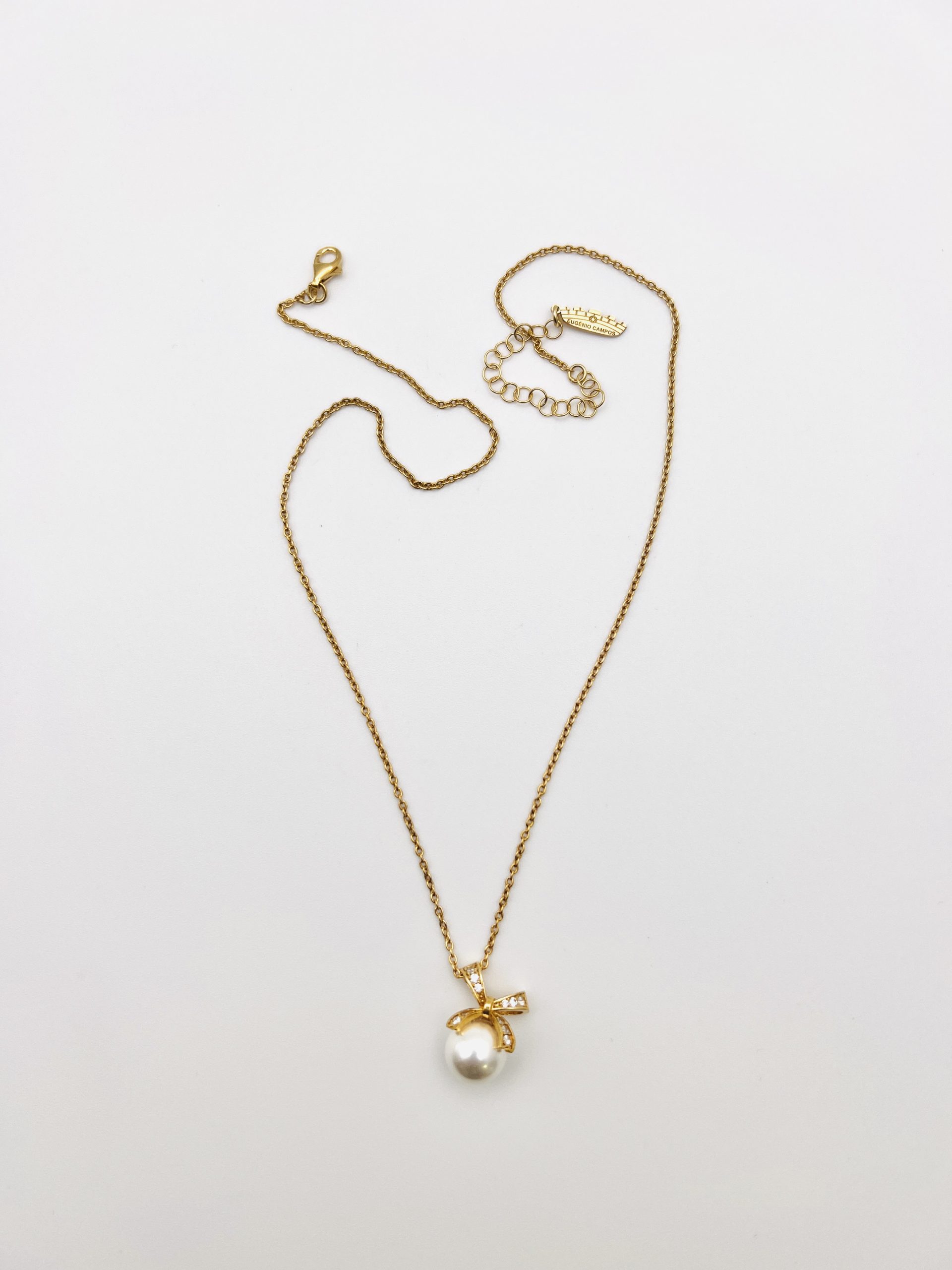 Colar Laços da Vida em prata de lei, banhado a ouro amarelo, com zircónias e pérola. Joia de laço brilhante, perfeito para si ou oferecer a quem mais admira. Nesta coleção, inspirada na convicção de que a vida é um presente e que os laços de amor que nos unem são o tesouro mais valioso que carregamos, cada joia reflete a beleza e a complexidade desses laços fundamentais. Desenhadas com a intenção de honrar essas relações preciosas, expressam a delicadeza dos laços afetivos, desde os mais simples aos mais intricados, mas igualmente expressivos profundos e poderosos.