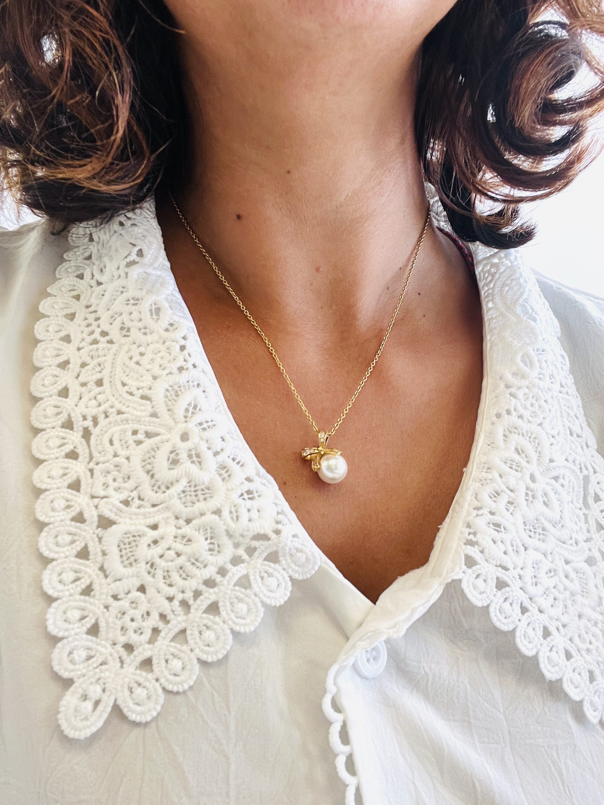 Colar Laços da Vida em Prata Dourada com Pérola EC