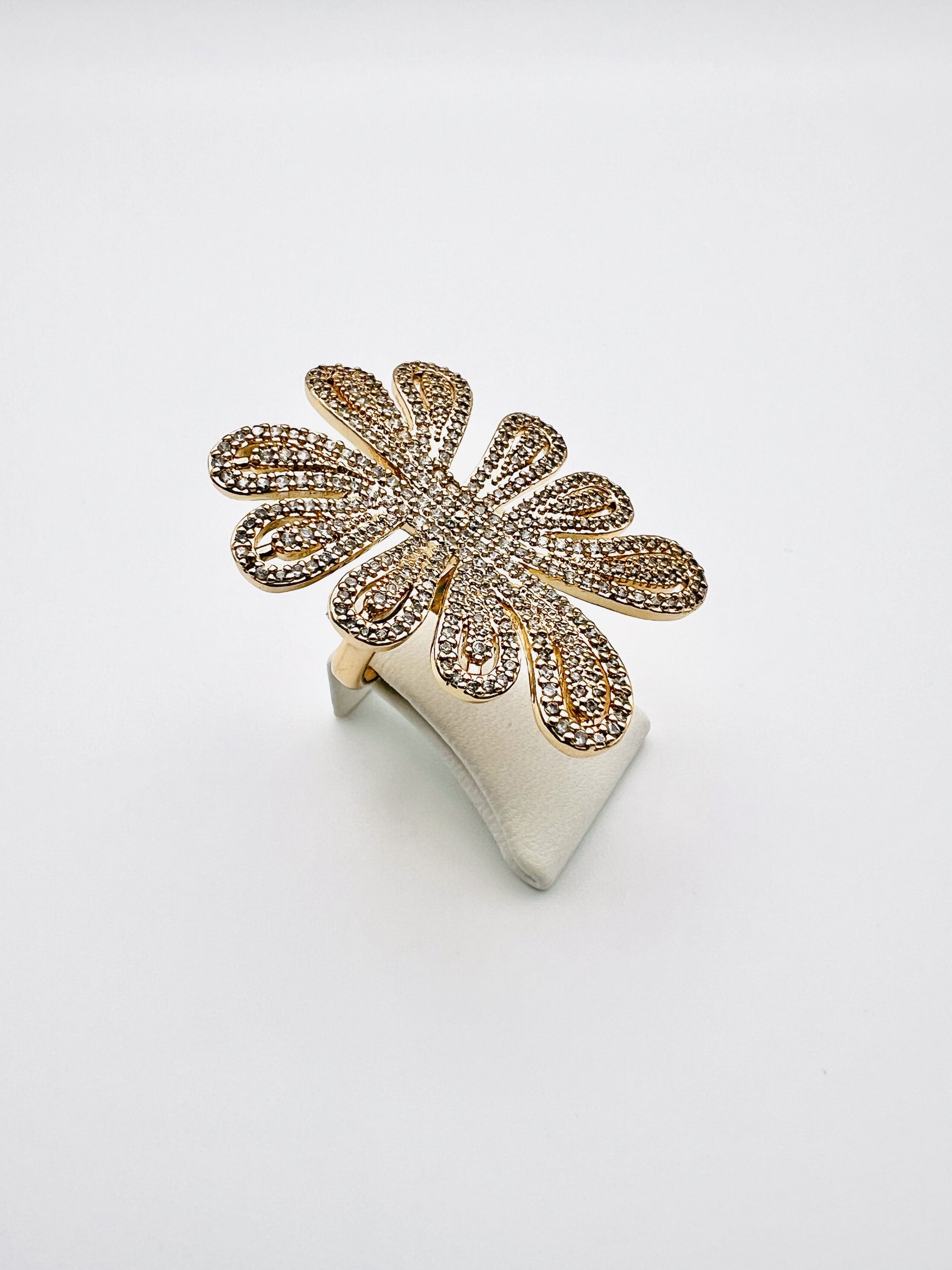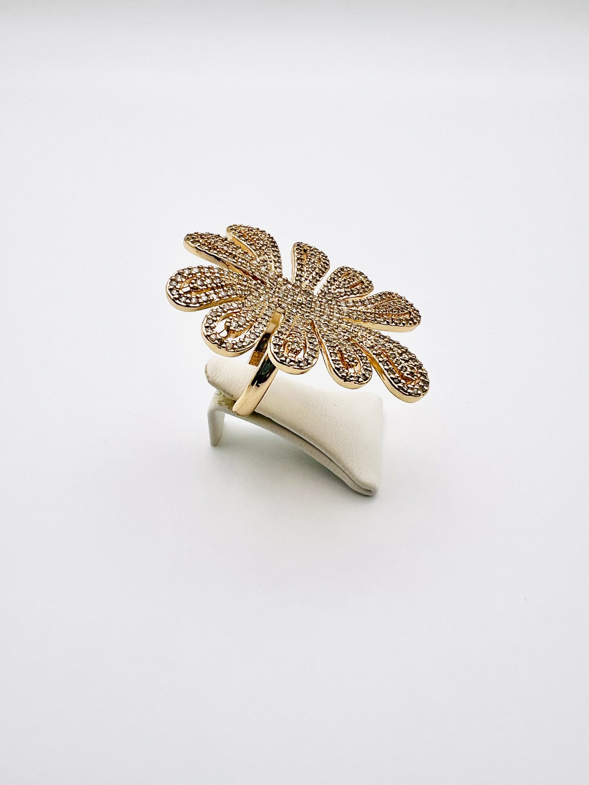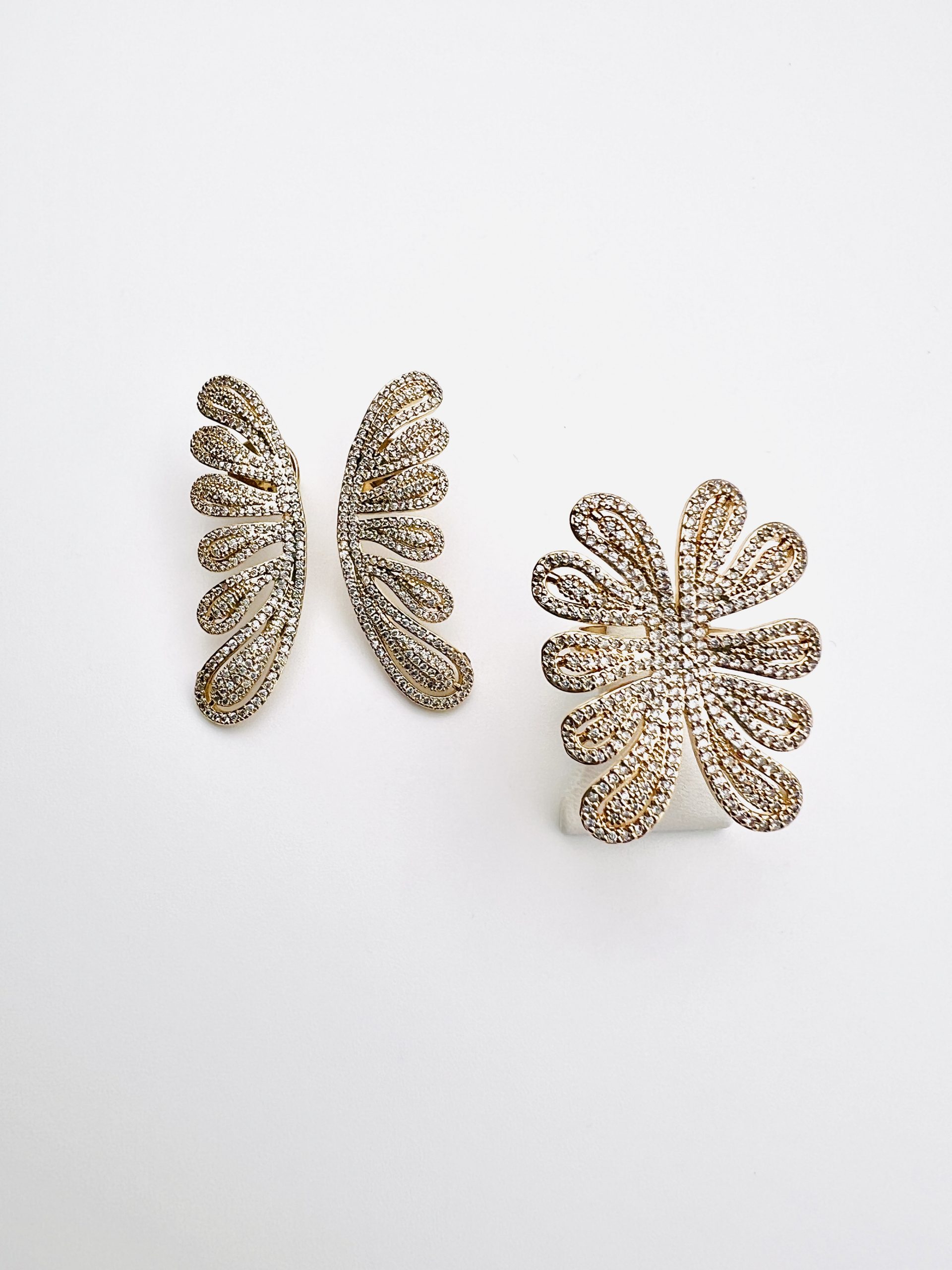 Conjunto de anel e brincos, modelo Palmeira, em semijóia.